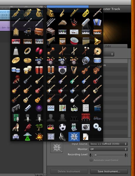 For your reference you can change the track icon to represent the instrument you are using. In the "Browse" tab you will see an icon in a square at the bottom. You can click on that and a bin of icons pops up where you can choose the appropriate icon for the track. (pic 24)