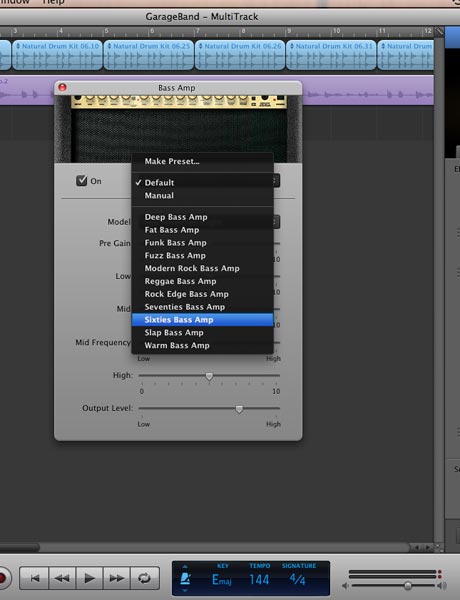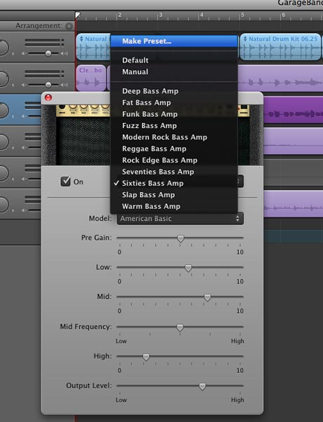This is different than the new amp model feature in GarageBand '09 for electric guitar. I wish Apple would make an update and use the same convention for bass amp modeling as they do for the current electric guitar amp modeling, where the GUI looks like real amps with knobs you can tweak.